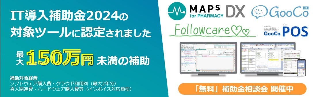 最大150万円の補助金申請が可能に!レセコン、服薬フォローアップ・オンライン服薬指導ツール、POSレジも補助金対象