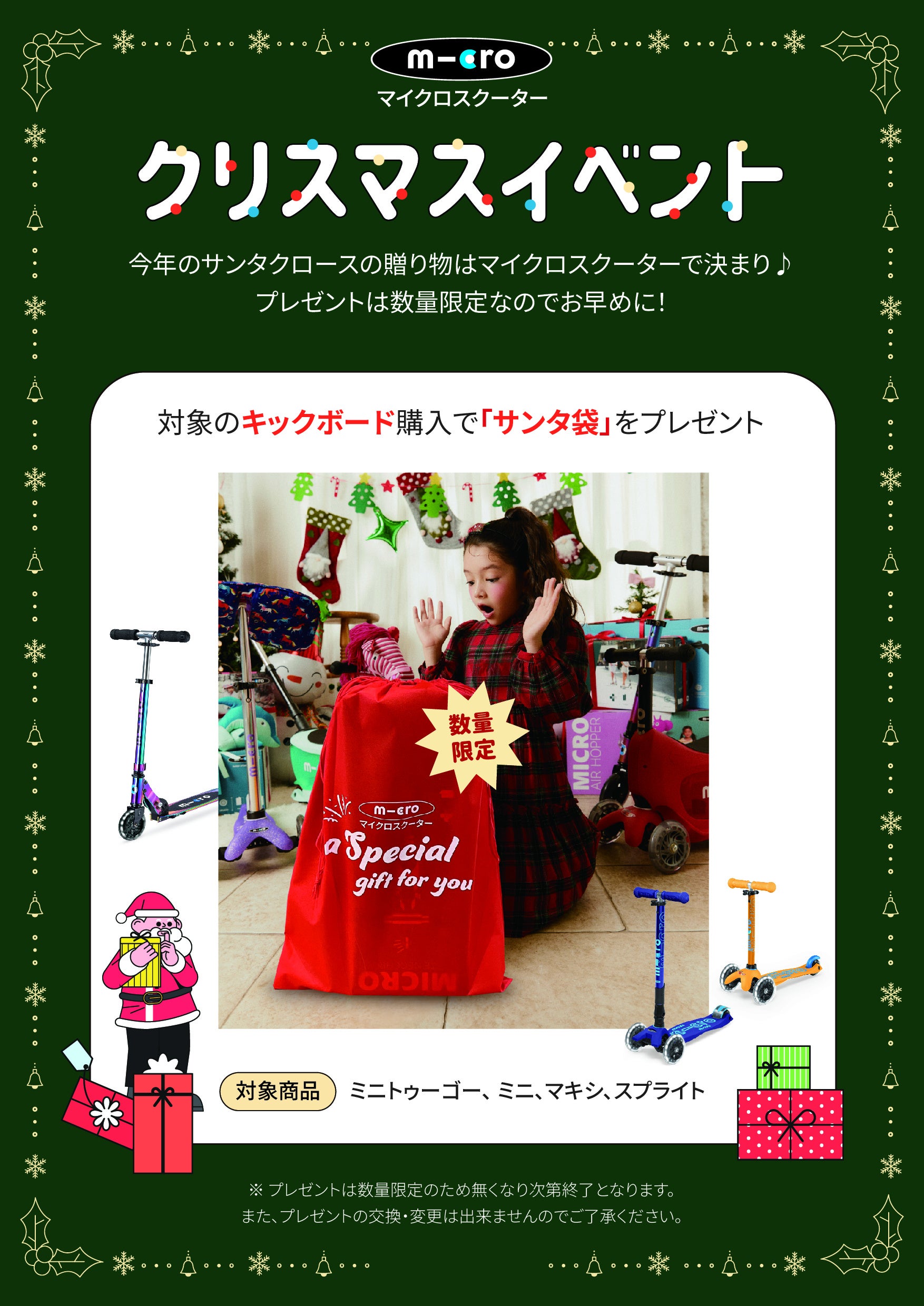 対象のキックボード購入で、「サンタ袋」をプレゼント