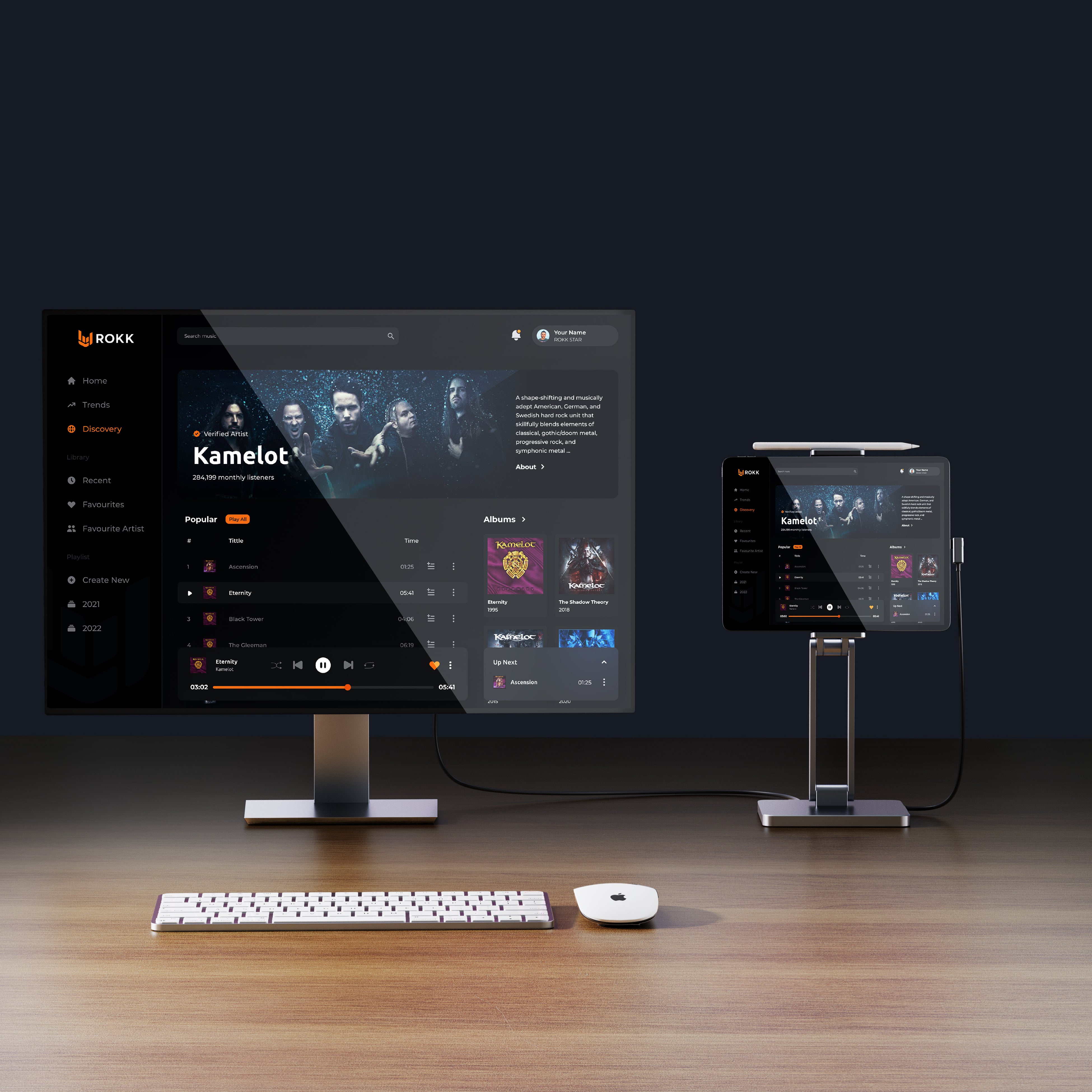 PD充電ポートをはじめとした各種接続ポートが搭載された8in1ハブを内蔵しています。これにより、一つのスタンドで複数のデバイスや周辺機器を簡単に接続することが可能になりました。デバイスと周辺機器の接続がこれまで以上にスムーズになり、作業の効率化はもちろん、楽しみ方も広がります。