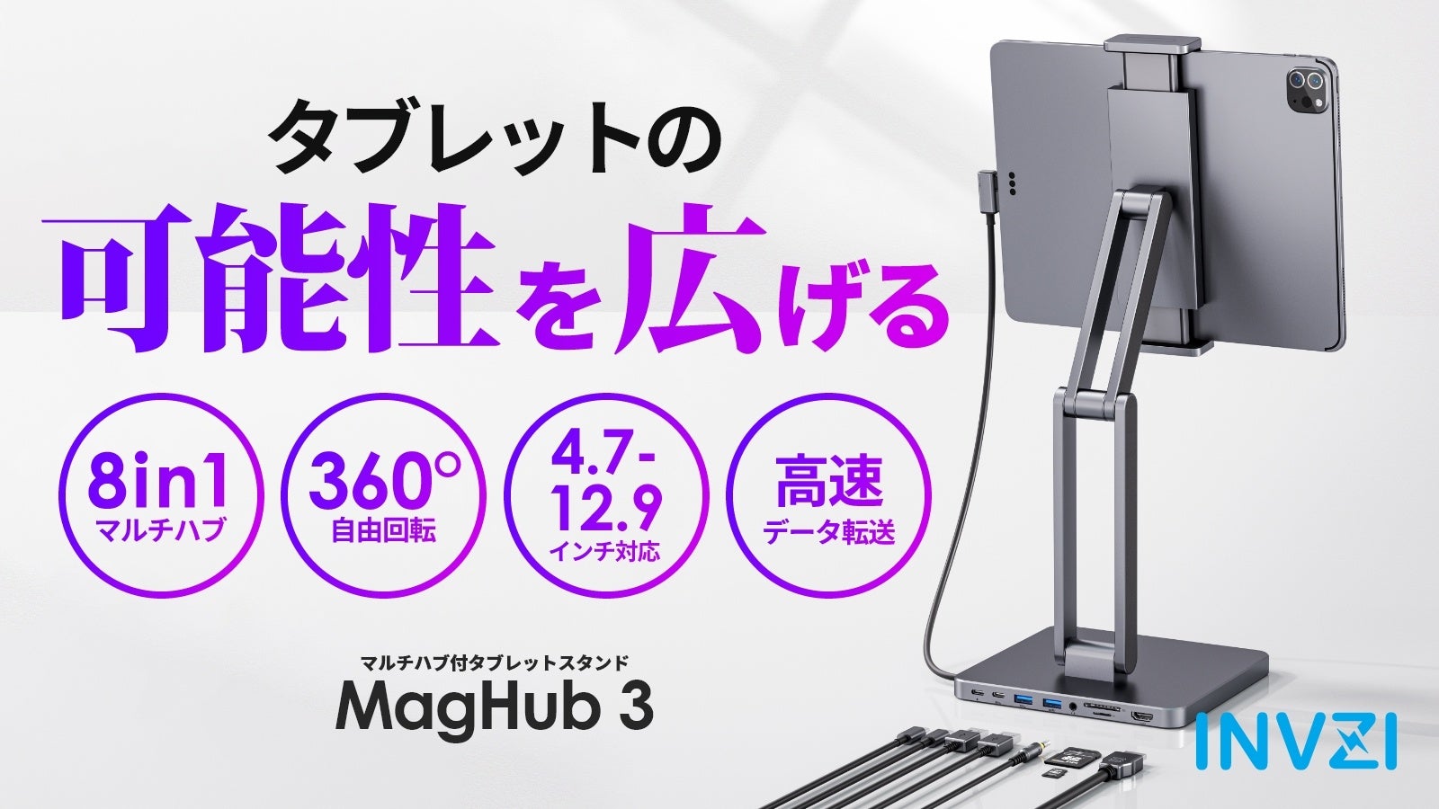 360°角度も高さも自由自在!8in1マルチハブが一つになった多機能タブレットスタンド『Maghub 3』Makuake応援購入総額200万円突破!
