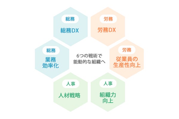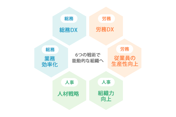 戦略総務とは、ルーチン化された業務の遂行や部門機能を維持しつつ、企業が抱えている課題を管理部門の視点から解決につなげる取組みです。Fleeksormは6つのプロセスから総務労務を能動的な組織へと成長を促し、戦略部門としてオーガニゼーション・イノベーションを実現します。