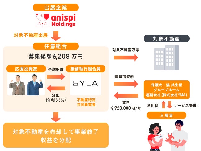 “世界中の不動産投資を民主化する。人生100年時代をテクノロジーと資産運用で豊かに。”をミッションに不動産クラウドファンディング『利回りくん』と投資用マンションの開発を手掛ける株式会社シーラ(本社:東京都渋谷区、代表取締役CEO:湯藤 善行、以下「シーラ」)は、会員登録数国内No.1の記念ファンド第2弾として、株式会社アニスピホールディングス(本社:東京都千代田区、代表取締役社長:藤田 英明、以下「アスニピホールディングス」)が手掛けるペット共生型障がい者グループホーム事業『わおん鎌ヶ谷』のファンド募集を6月8日(水)より開始いたします。募集金額は6,208万円です。