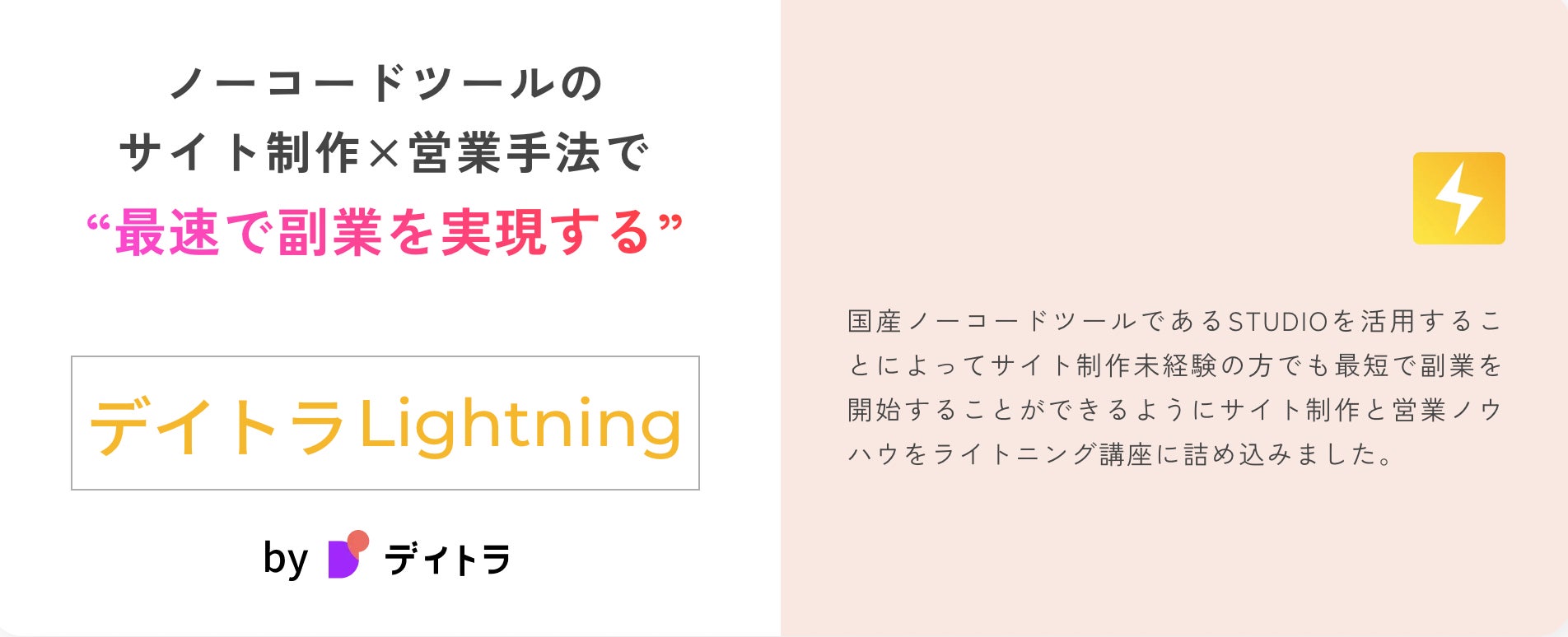 「デイトラライトニング」は、スキル習得から案件獲得まで副業に必要なポイントだけをギュッと凝縮し、2日間で学べるように設計した副業特化の短期集中講座です。
