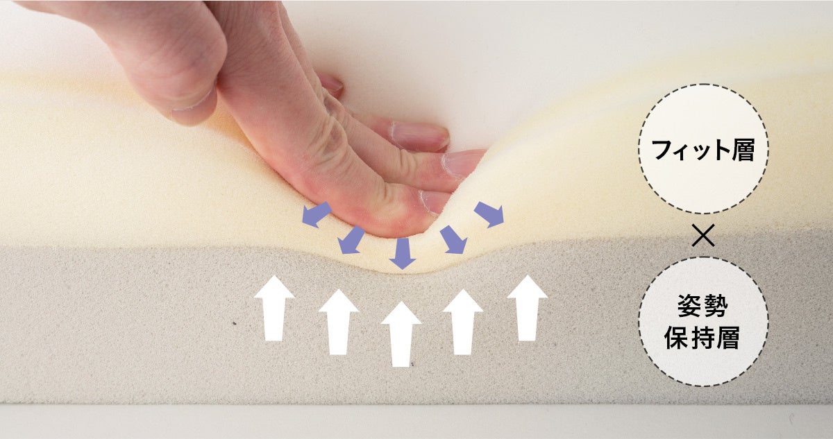 上層:高反発ポリウレタンフォーム(25D 170N) 厚さ:約4.5cm 下層:高反発ポリウレタンフォーム(35D 260N) 厚さ:約5.5cm |