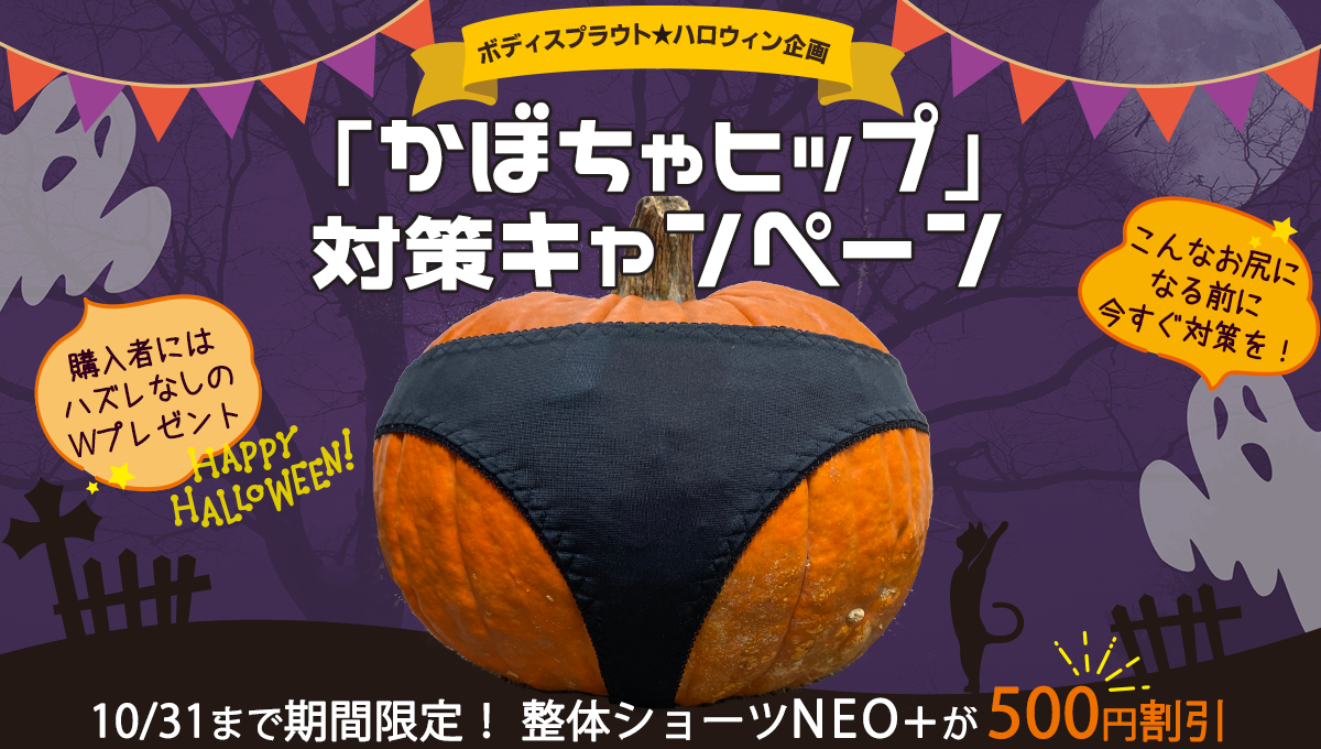 また、ハロウィーン当日の10/31(火)まで「かぼちゃヒップ対策キャンペーン」として、「整体ショーツNEO+」が500円OFFになるキャンペーンを実施いたします。