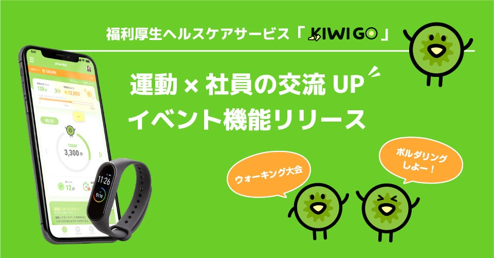 株式会社アジャイルウェア(本社:大阪市中央区、代表取締役CEO:川端 光義)が運営する、楽しく少しずつ従業員の運動を促し習慣化できる福利厚生ヘルスケアサービス「KIWI GO」は、誰でも自由に社内イベントを企画・運営できる「イベント機能」をリリースいたしました。
