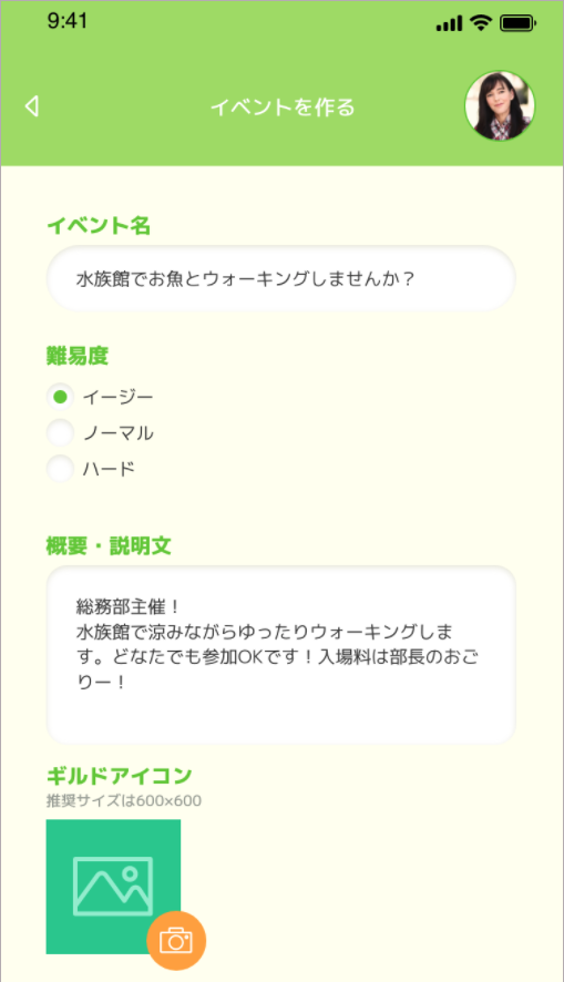 ウォーキングやランニングなど好きな運動のイベントページを、テンプレートに沿って入力するだけで誰でも簡単に作成できます。