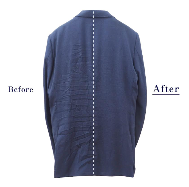 ジャケットから約20㎝離し、シワが気になる部分1カ所あたり約1,2回スプレー。