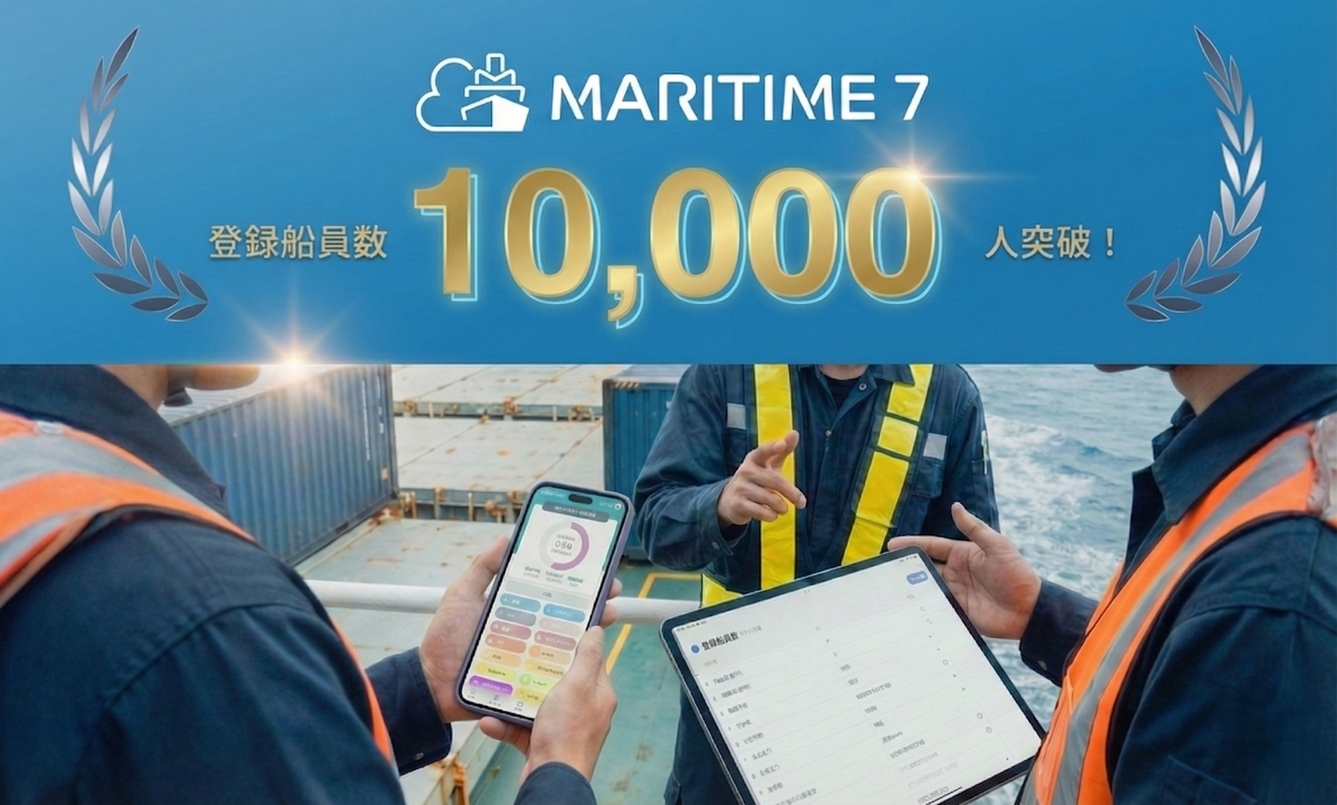 この度の登録船員数1万人突破は、慢性的な人手不足や複雑化する船舶管理の業界共通の課題に対し、デジタル活用がもはや「選択肢」ではなく「必須」になりつつあることの証左です。『MARITIME 7』は、企業の規模を問わず、持続可能な船舶管理体制を実現するためのインフラ構築を目指して参ります。