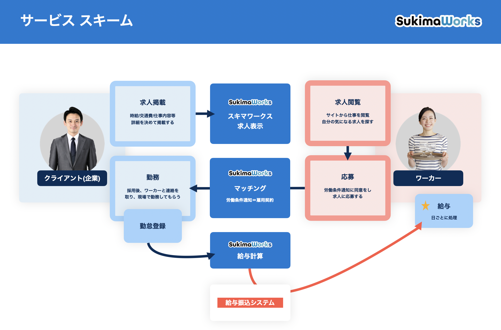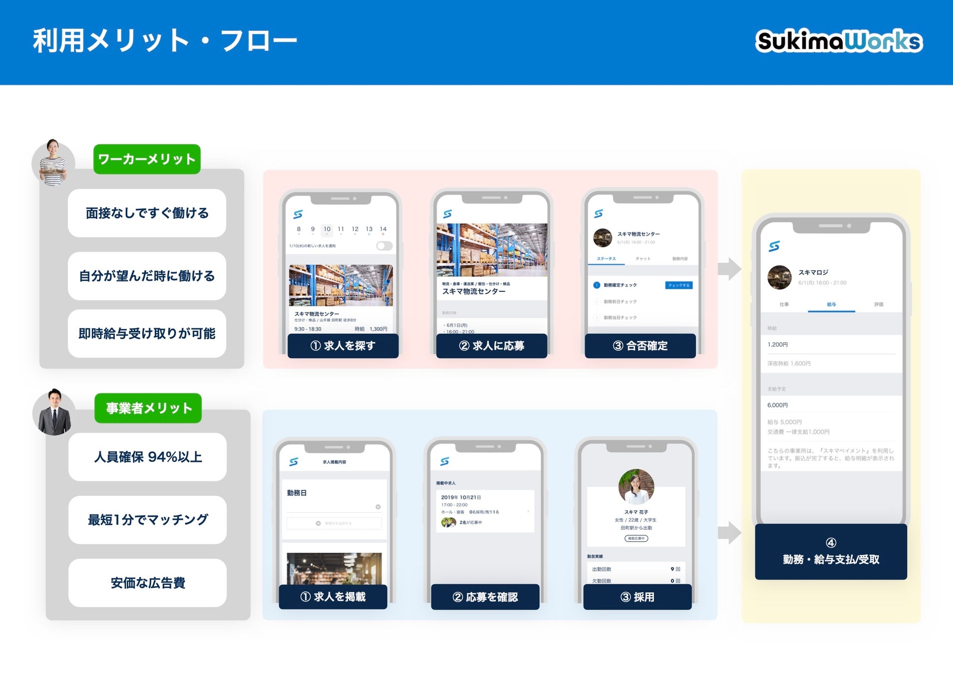 スキマワークス社は、「働くの不合理をフェアにする」をミッションに、物流・飲食業界に特化したスポット求人マッチングサイト「スキマワークス」を運営しております。