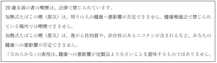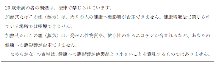 ※1 「なめらかな」の表現は、本製品の健康に及ぼす悪影響が他製品に比べて小さいことを意味するものではありません。