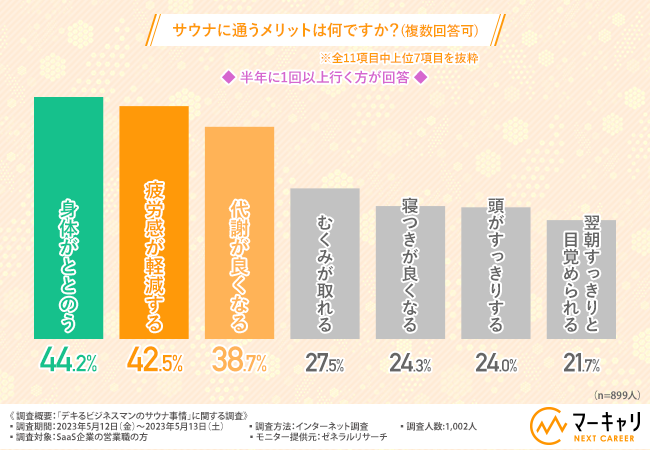 サウナに行く目的として、効率的に疲労回復を回復できるという意見が最多となりましたが、仕事にも良い影響をもたらしているのでしょうか。