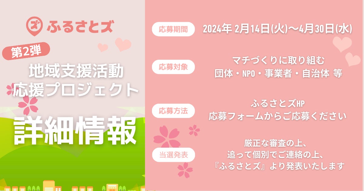 【ふるさとズ】ふるさと納税の寄附を通じた『第2弾 地域支援活動 応援プロジェクト』を開始。マチへの想いや仲間とのステキな活動を大募集。