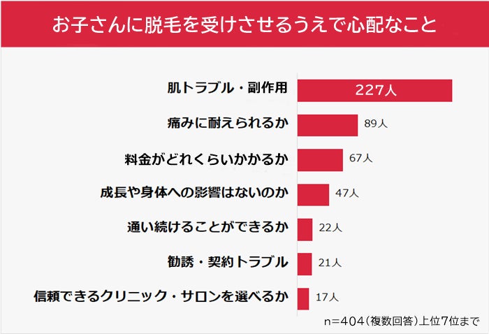 お子さんに脱毛を受けさせるうえで不安なこと1位は「肌トラブル・副作用」