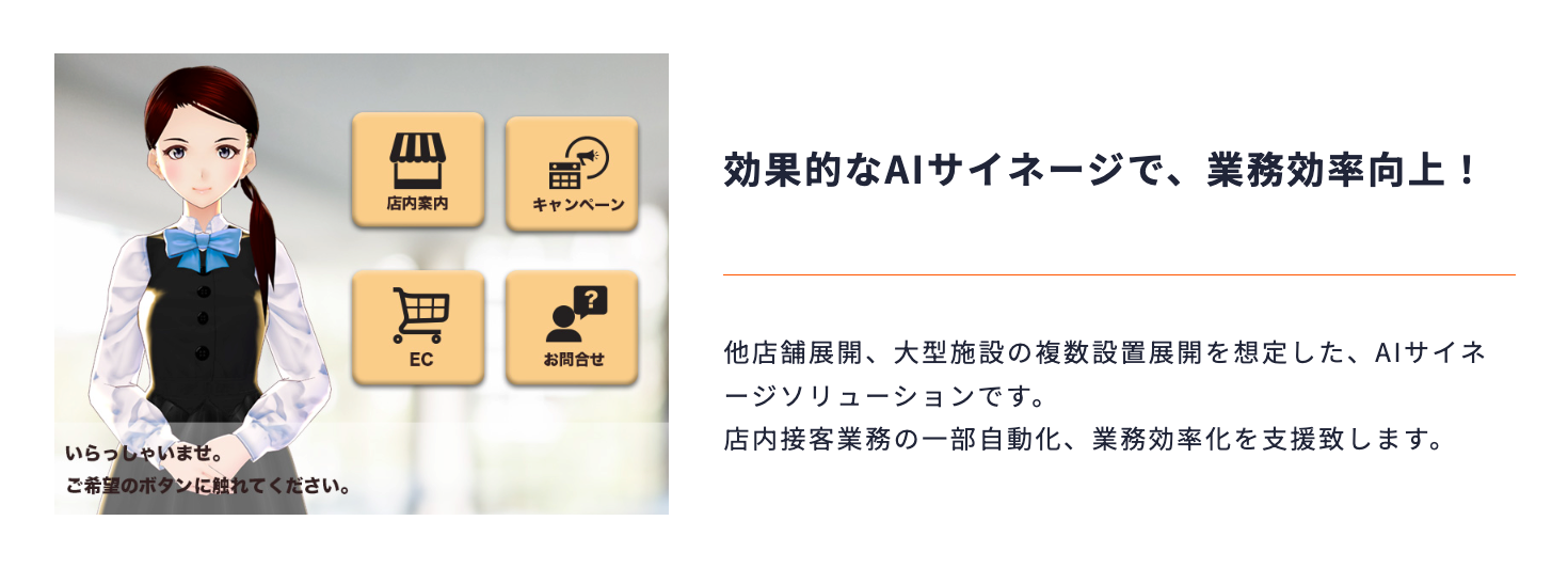 窓口を利用するお客様のお悩み事に応じて、3DCGのバーチャル店員によるご案内を行う自動応対システムです。