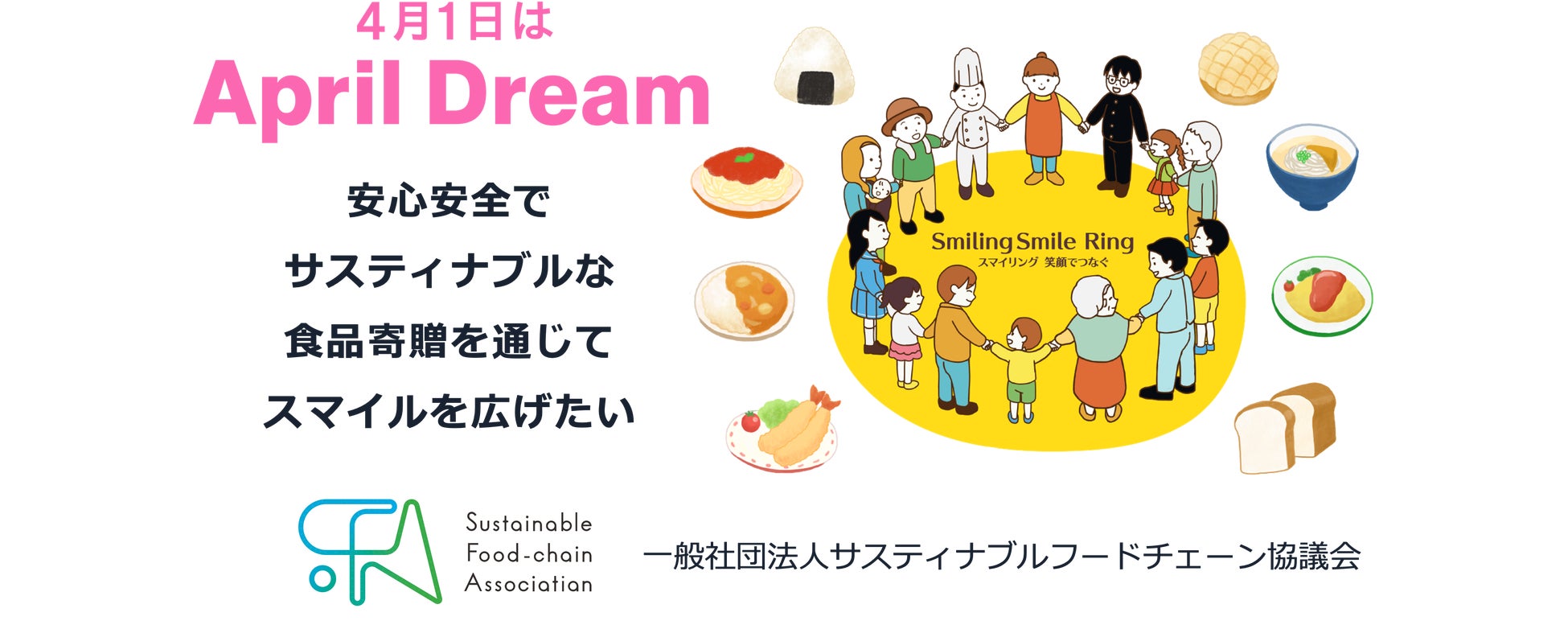当団体は、4月1日に夢を発信する日にしようとするApril Dreamに賛同しています。このプレスリリースは「一般社団法人サスティナブルフードチェーン協議会(SFA)」の夢です。