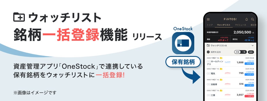 野村の投資情報アプリ「FINTOS!(フィントス!)」野村の資産管理アプリ「OneStock(ワンストック)」とのデータ連携で保有銘柄を一括登録できる新機能を搭載
