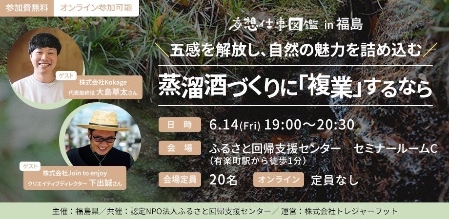 ・名称:妄想仕事図鑑 in 福島 〜五感を解放し、自然の魅力を詰め込む蒸溜所づくりに「複業」するなら〜