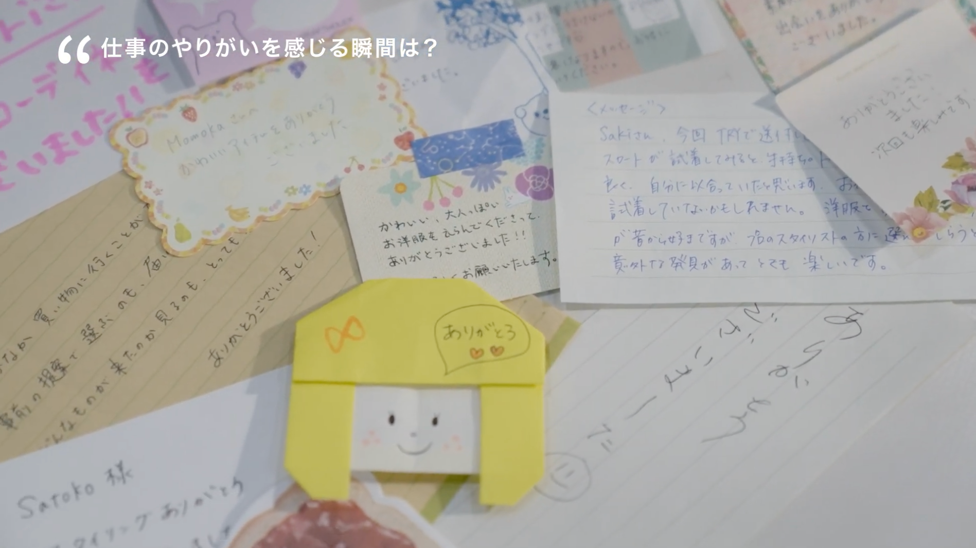 本ムービーは、普段は表に出ることのない、「サービスを支える人の想い」にフォーカスを当てた構成となっております。制作にあたり、インタビューをしたDROBEのメンバーは26名。サービスを通じてお客さまとの交流があるスタイリストやカスタマーサポートの担当者だけではなく、MD(商品担当)、物流、エンジニア、コーポレート、経営陣まで、ありとあらゆる職種の人たちのインタビューをつなぐ形でストーリーが展開されていきます。それぞれの仕事への想い、お客さまへの想い・メンバーへの想い、ファッション業界への想いなど、さまざまな角度からDROBEへの想いが語られています。人の存在が見えにくいオンラインのサービスだからこそ、普段なかなか触れることのできない中の人たちの想いを感じていただけると嬉しいです。