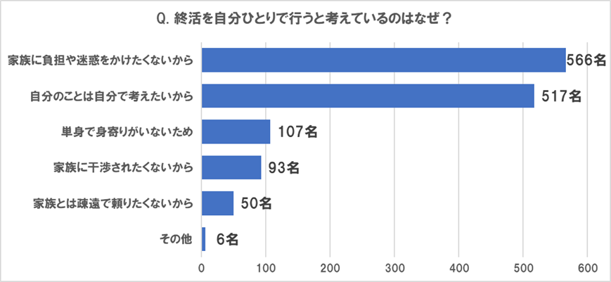 ■「終活」をひとりで行いたい主な理由は「家族に負担や迷惑をかけたくない」「自分のことは
