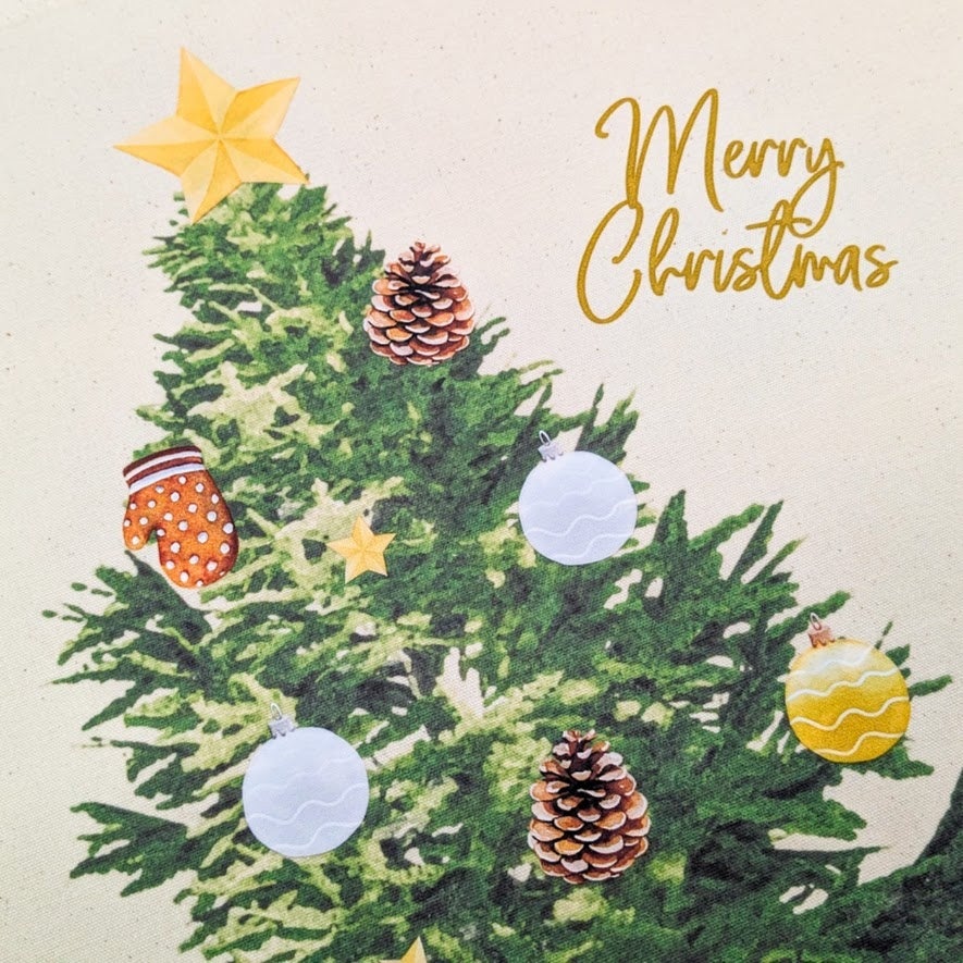 プレゼントやオーナメントなどツリーの飾りをプリントした