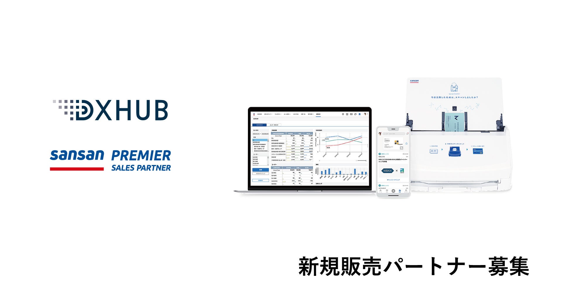 DXHUB株式会社(本社:京都府京都市 代表:澤田 賢二)は、営業DXサービス「Sansan」を始めとする働き方を変えるDXサービスを提供する、Sansan株式会社の「Premier Sales Partner」として認定を受け、新規販売パートナー様の募集を開始することを発表致します。