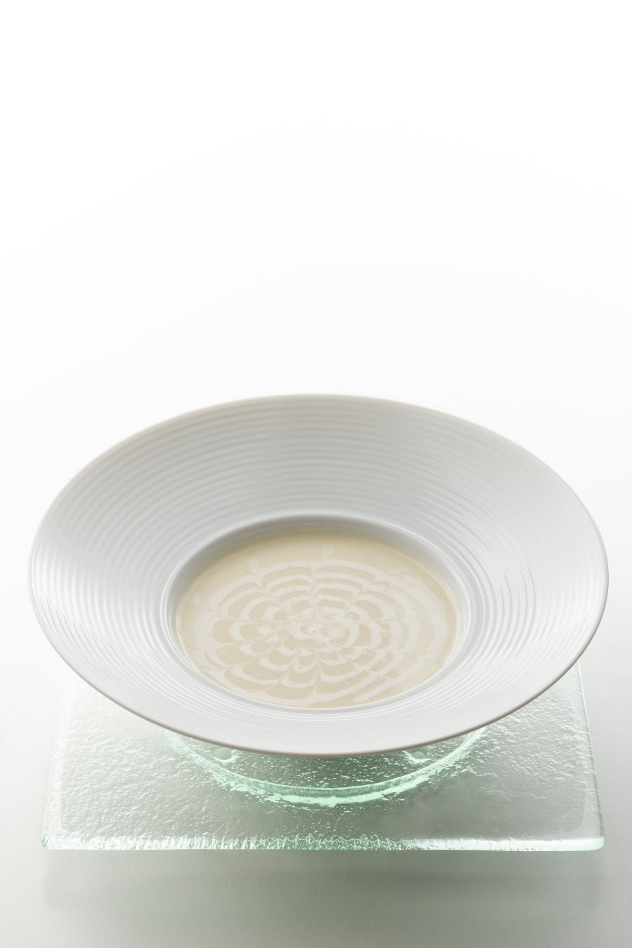 本品は、回転レストラン「ロンド」の夏のフルコースに提供されていた冷製じゃがいものポタージュ「ヴィシソワーズ」です。