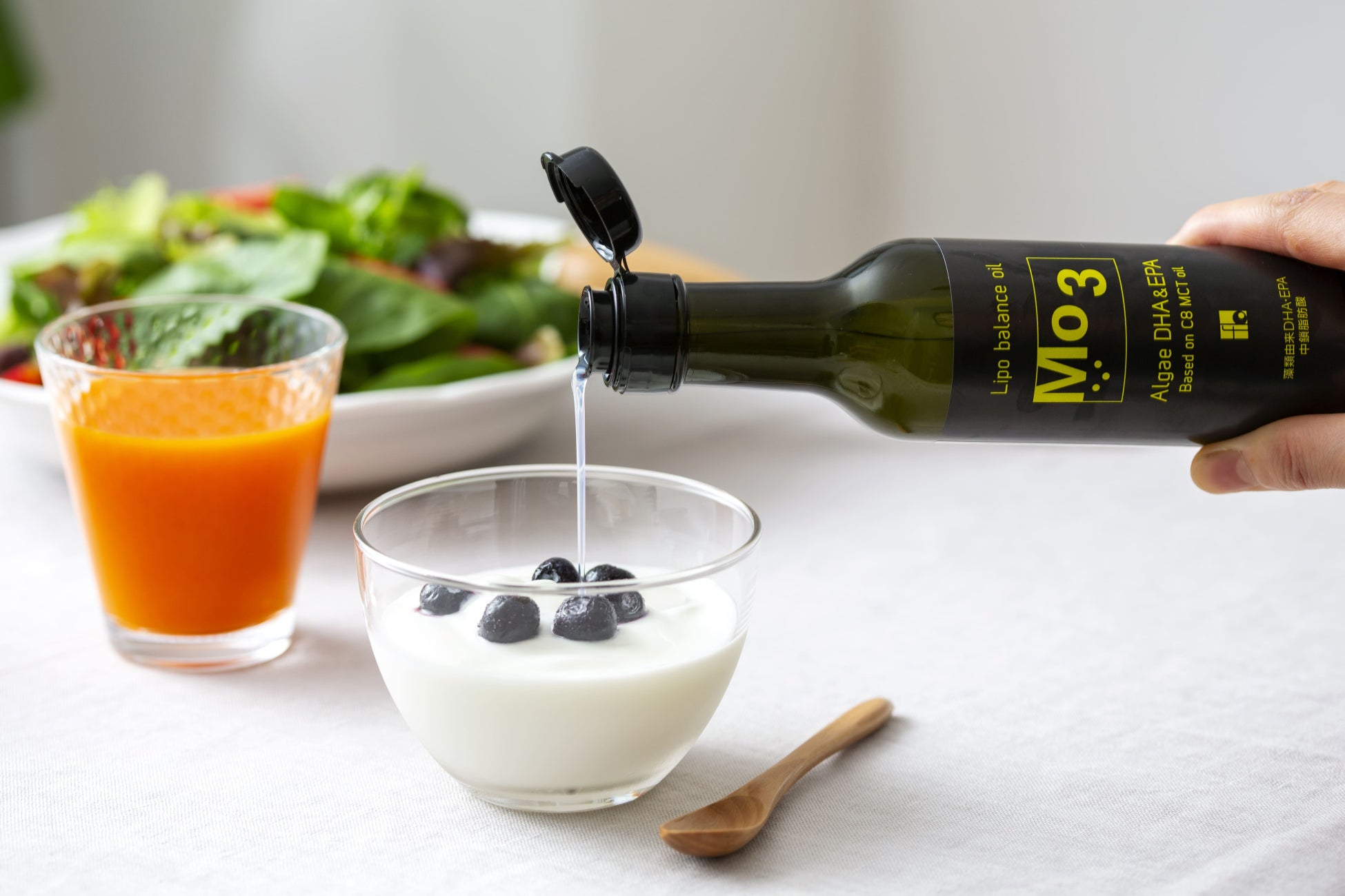 Mo3リポバランスオイルは、藻類由来のオメガ3とMCTオイルをブレンドした次世代オイルです。