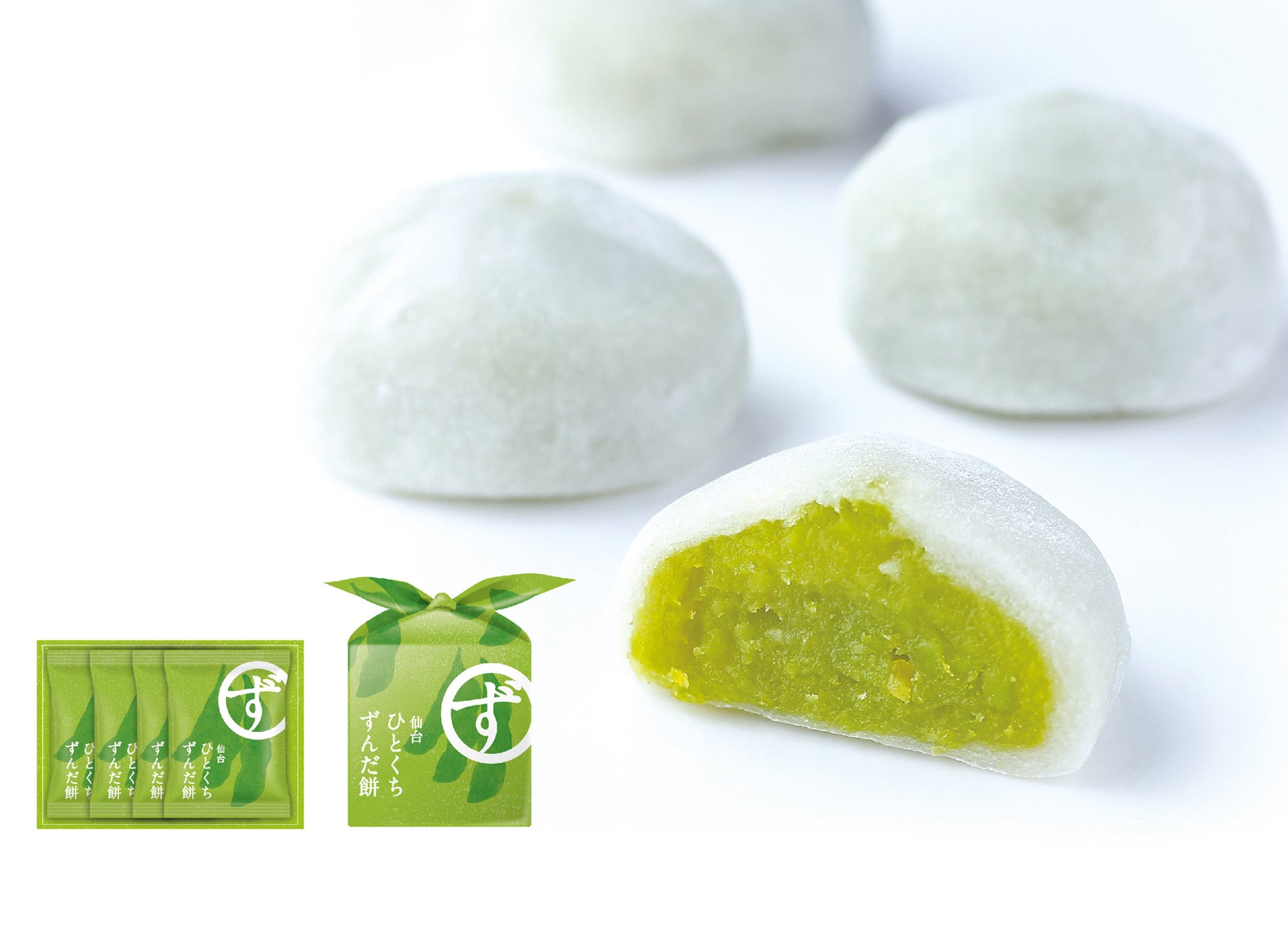 宮城県産のもち米「みやこがね」を使用して、ずんだ餡をふわふわ食感のお餅で包みました。ずんだ好きにはたまらないお菓子です。