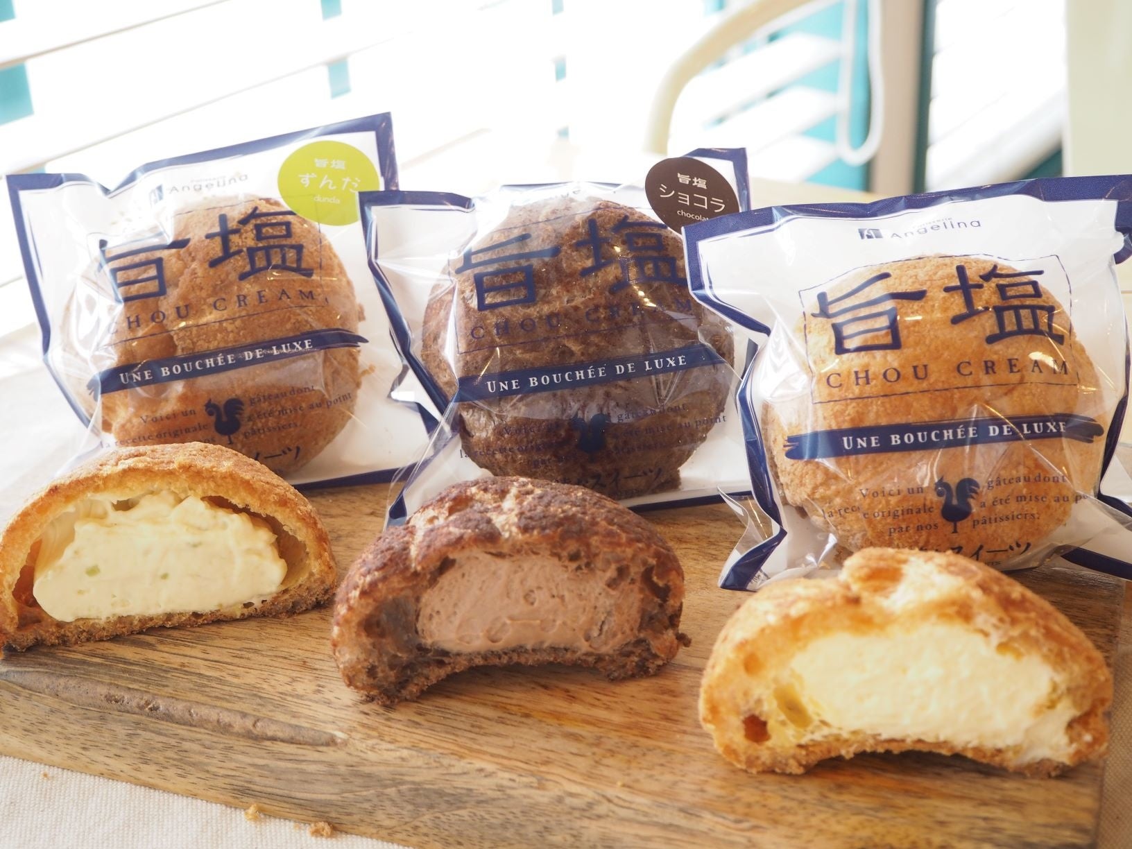 宮城県にあるパティスリーアンジェリーナの旨塩シューは、「伊達の旨塩」を使用したあまじょっぱい味わいで人気の逸品。サクサクとしたシュー生地と濃厚なコクのあるクリームをお楽しみください。
