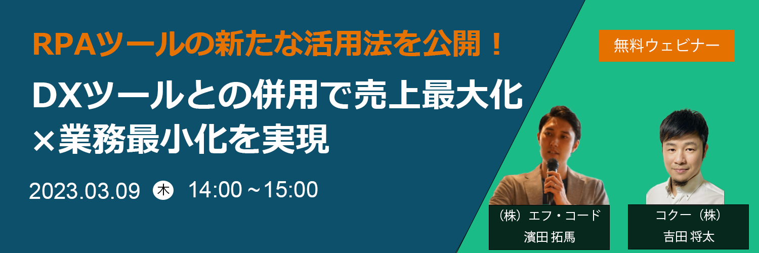 <エフ・コード×コクー共同開催>2023年3月9日(木)に無料ウェビナー『RPAツールの新たな活用法を公開!DXツールとの併用で売上最大化×業務最小化を実現』を開催