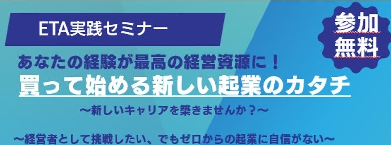 あなたの経験が「最高の経営資源」に。新しい起業のカタチ「ETA」を知るセミナーを11月14日開催!