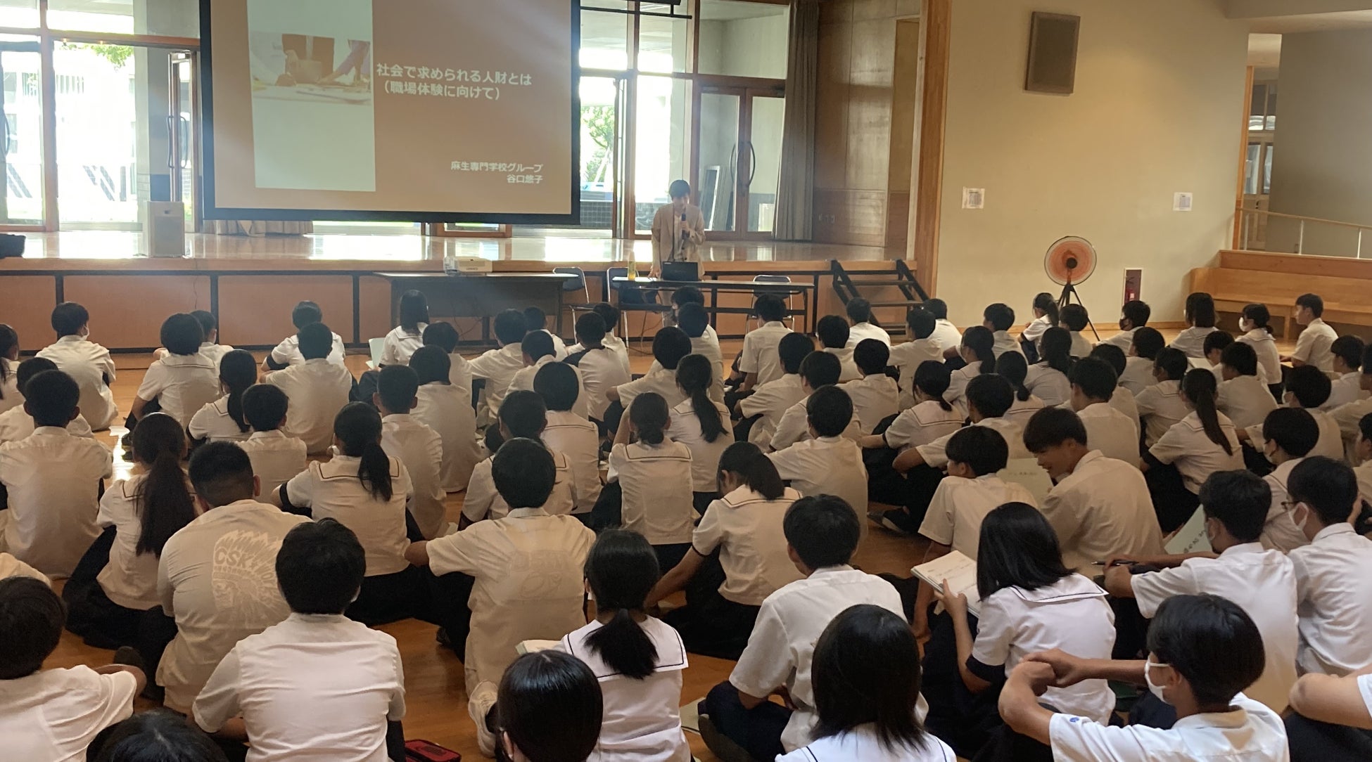 麻生専門学校グループでは、福岡県内の中学校において、職業理解やマナー教育プログラムなどを実施しています。