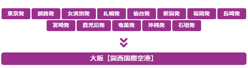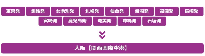 《peachで行くお得な大阪旅行》ダイナミックプラン!東京・釧路・女満別・札幌・仙台・新潟・福岡・長崎・宮崎・鹿児島・奄美・沖縄・石垣の各空港から大阪(関空)へいらっしゃい