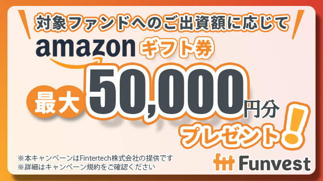 ~ 出資額に応じて最大 50,000円分 のAmazonギフト券をプレゼント ~