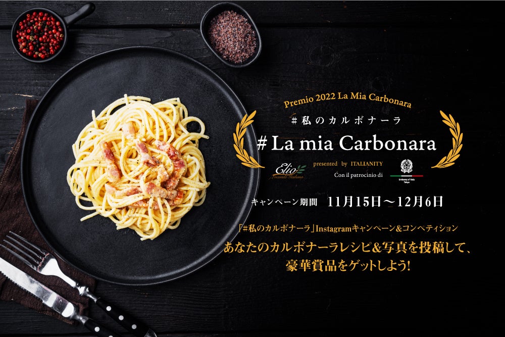 応募方法:ITALIANITY公式Instagram (@italianity_jp) をフォローしていただき、ハッシュタグ「#lamiacarbonara」「#わたしのカルボナーラ」をつけて、カルボナーラのレシピと写真を投稿してください