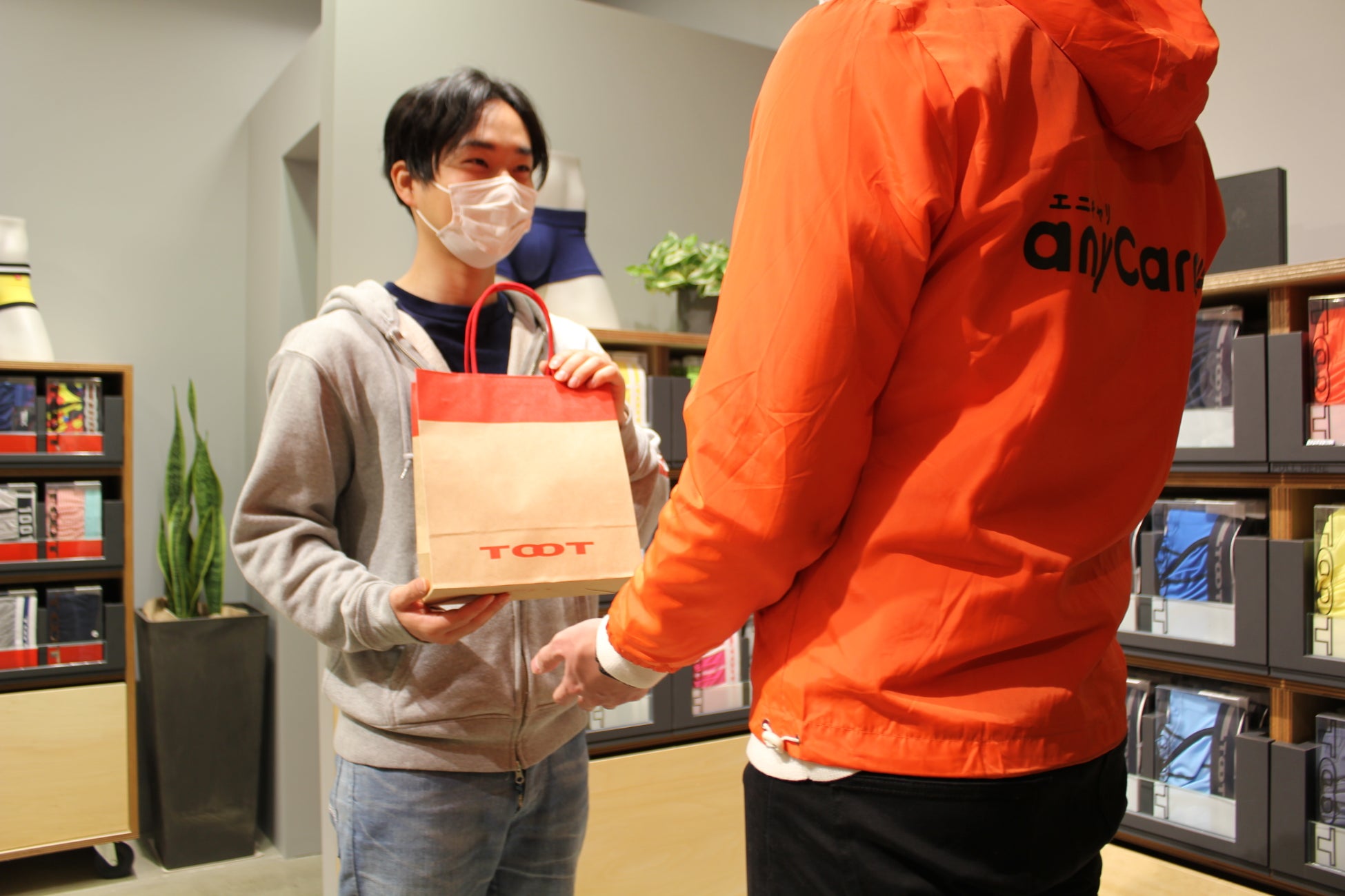 街中のすべての商品が30分で手元に届く社会を目指す株式会社エニキャリ(以下当社)が、日本発のメンズ・アンダーウェアブランドを展開する株式会社TOOT(トゥート)の商品を4月1日から6月30日までの期間限定でデリバリーします。今回のデリバリーサービスは、TOOT SHINMARUNOUCHI店(東京都千代田区丸の内1-5-1 新丸ビル 4F)の店頭商品(店舗在庫)のアンダーウェアが対象で、同店から半径1.5km内に最短30分でお届けします。