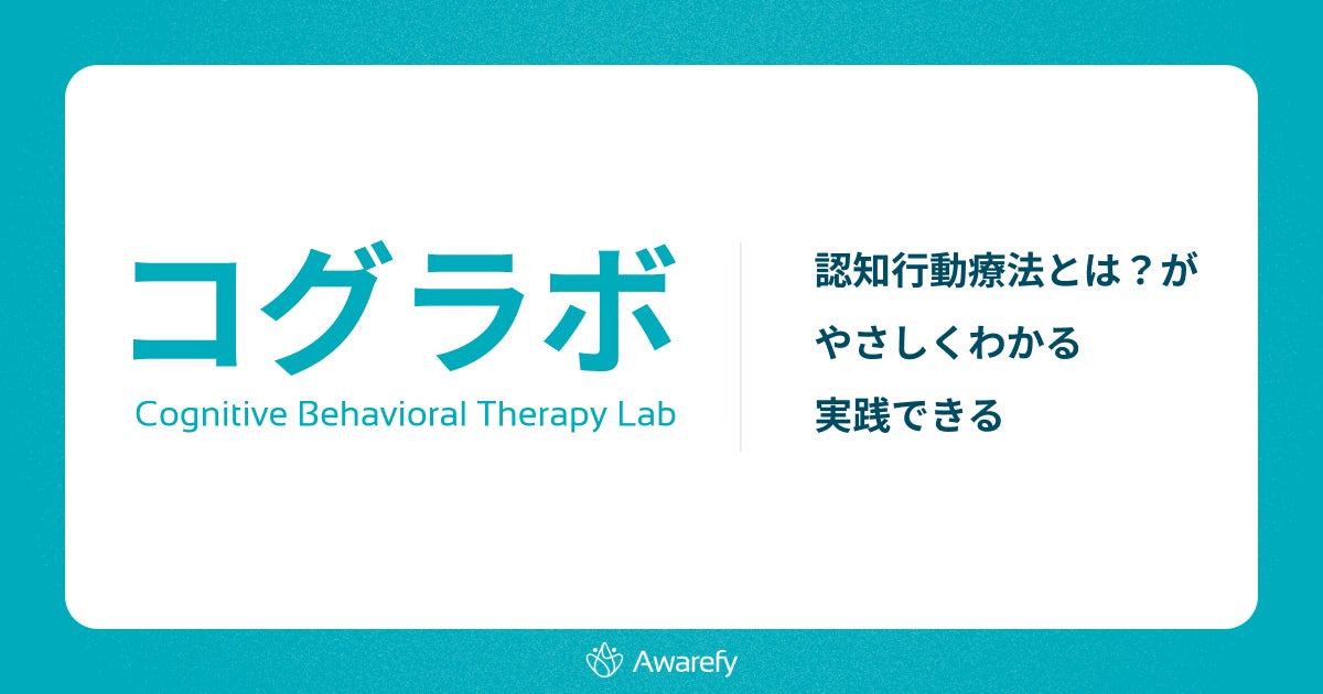 デジタル認知行動療法アプリAwarefy(アウェアファイ)は、認知行動療法とは?がやさしく分かり実践できるメディア「コグラボ(Cognitive Bahavioral Therapy Lab)」をオープンしました。認知行動療法を中心とした様々なテーマの記事を展開し、読者の皆さまの学習やセルフケアの実践をサポートしてまいります。