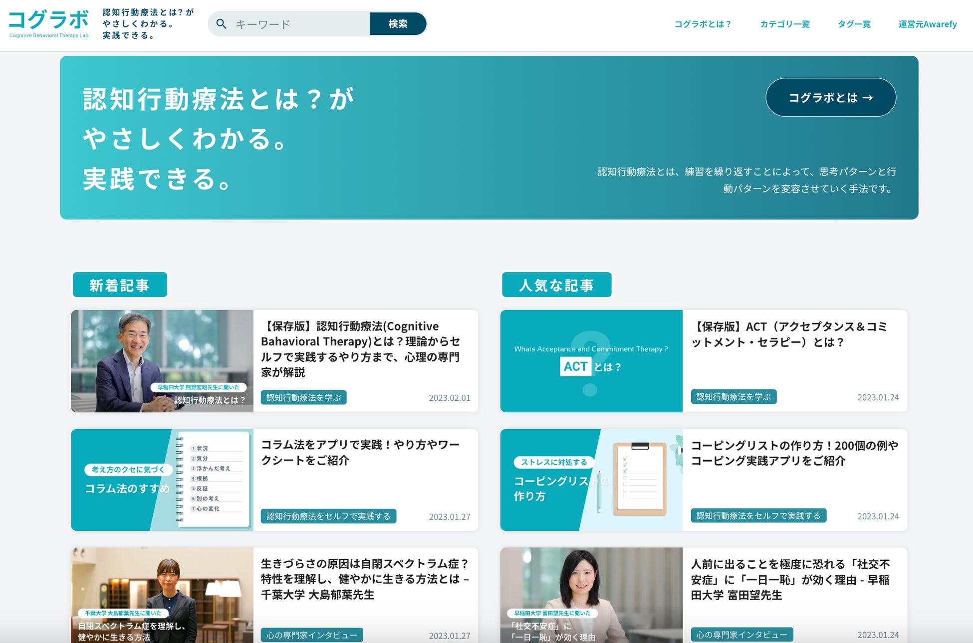 デジタル認知行動療法アプリAwarefyが「認知行動療法とは?」がやさしく分かり実践できるサイト「コグラボ」をオープン