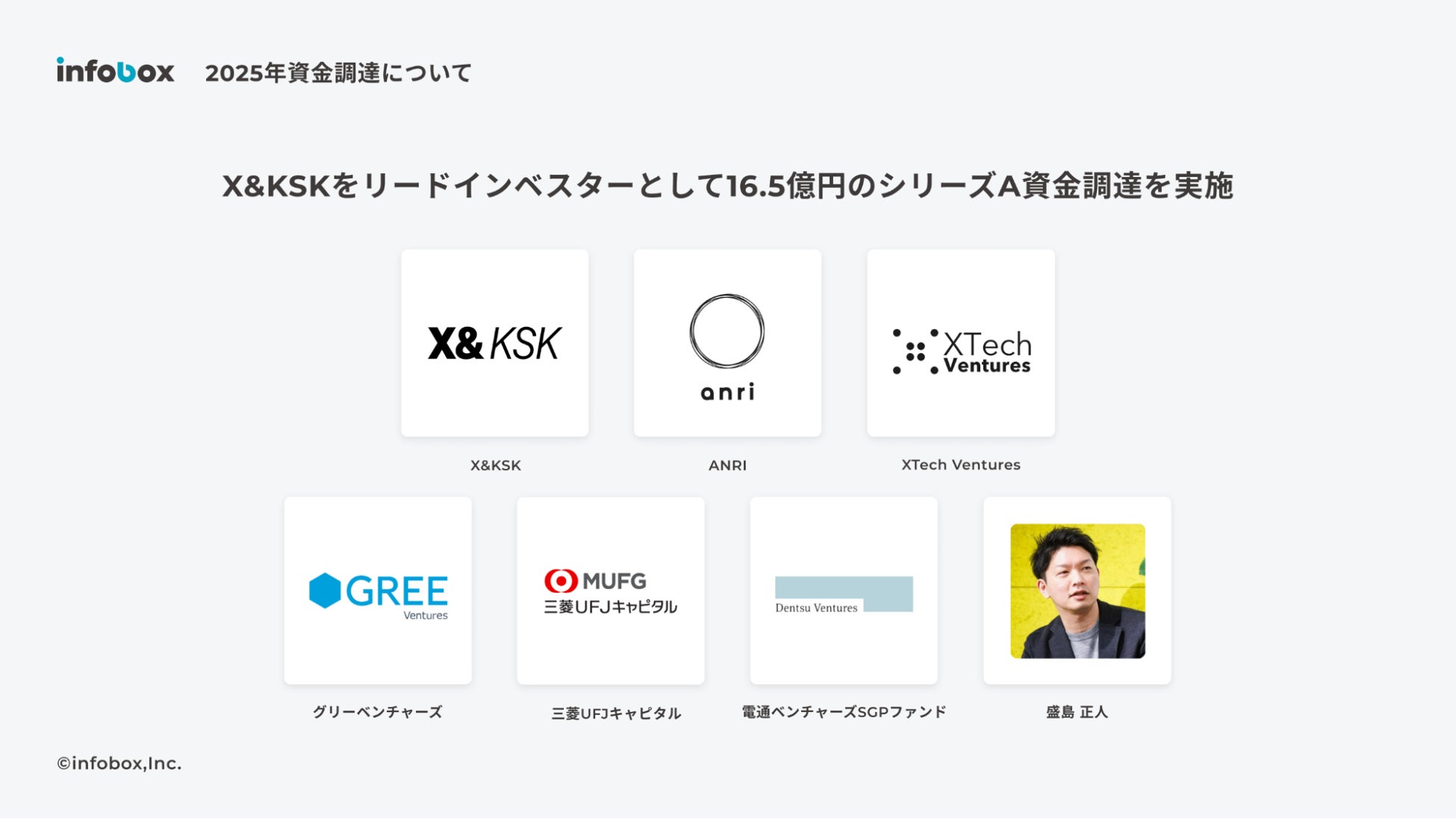 この度インフォボックスはシリーズAラウンドにおいて、16.5億円の資金調達をいたしました。