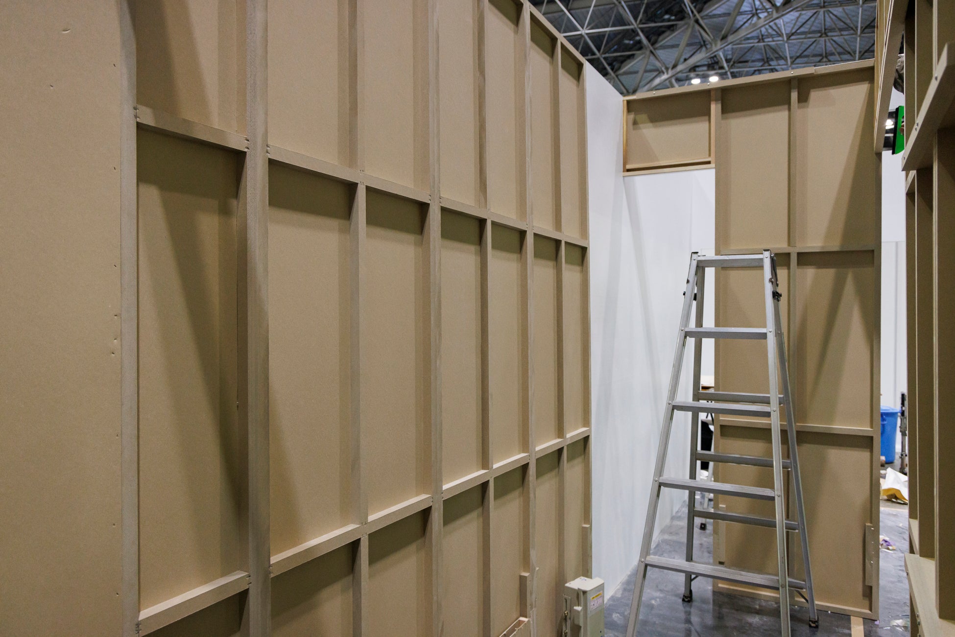 展示会ブースを作る際にデザイン的な自由度がある「木材を使用したブース」。この構法は、寸法自由性、デザイン再現性の観点から今後もなくなることはない、重要度の高い構法と考えられます。