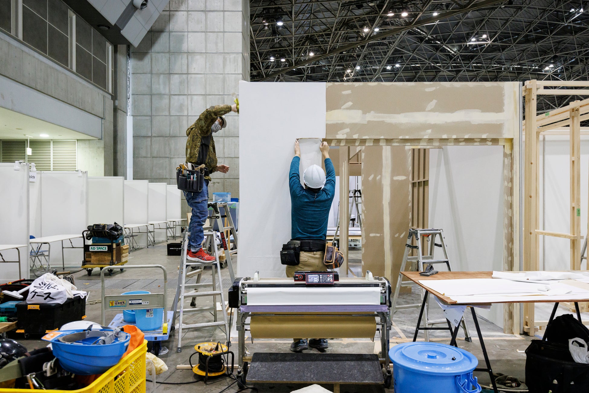 しかも、この構法。ブースをつくる職人の方々の業務はほとんど変わりません。この「素材の置き換え」が重要なポイントとなっています。