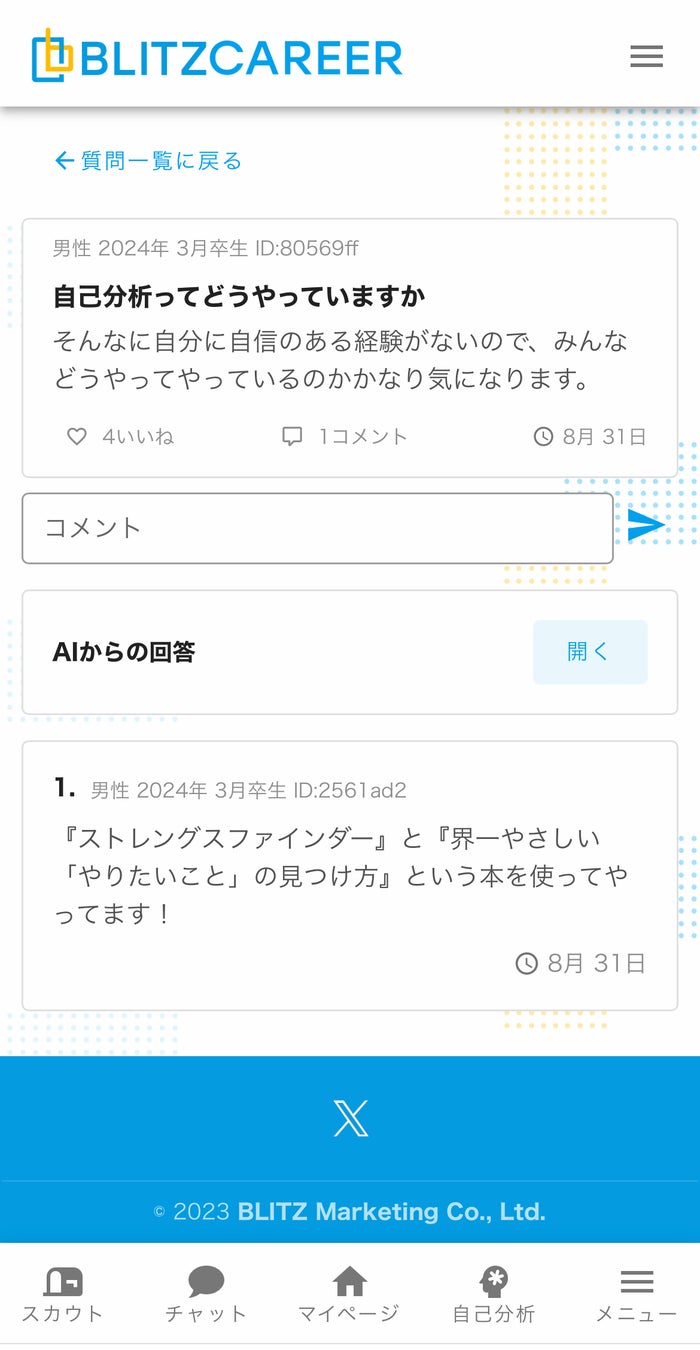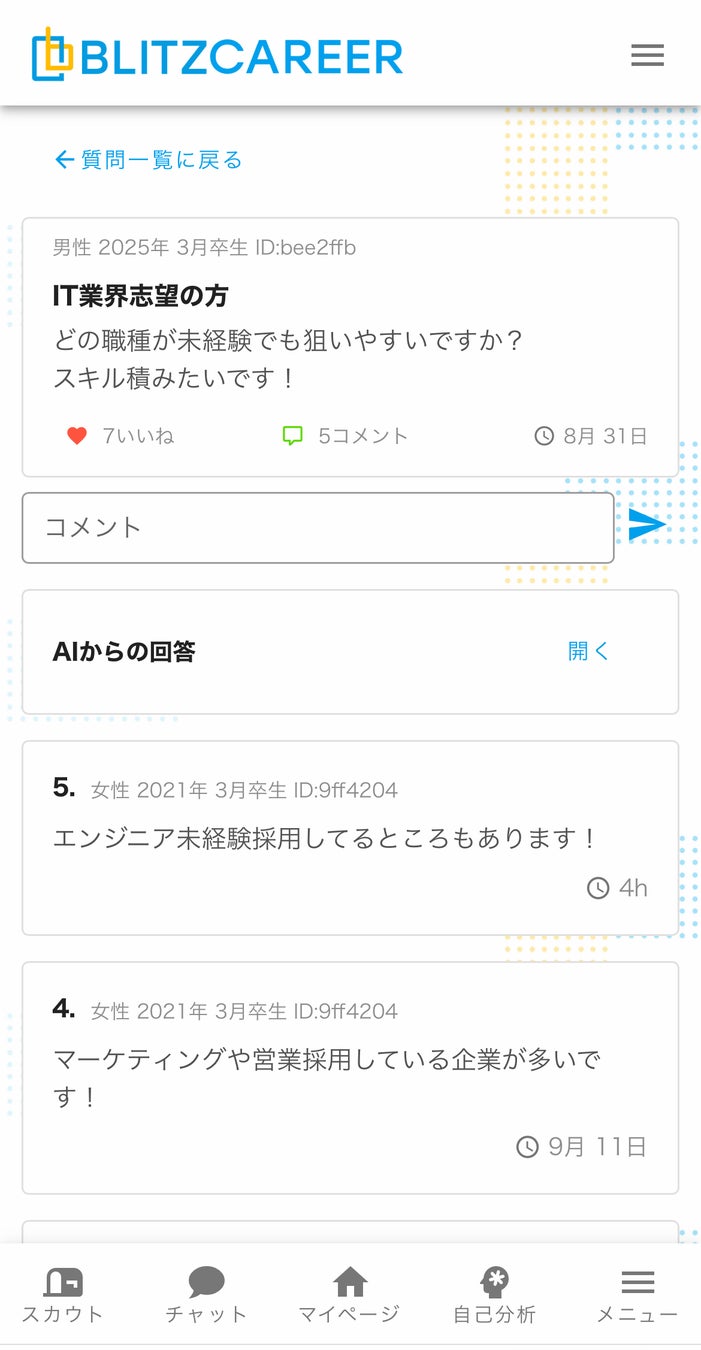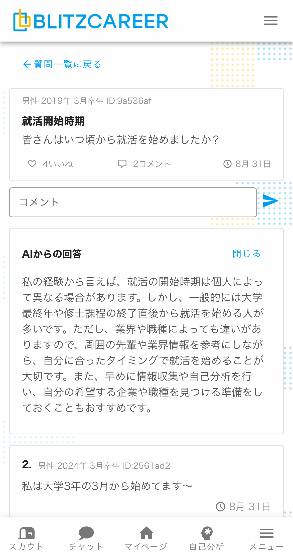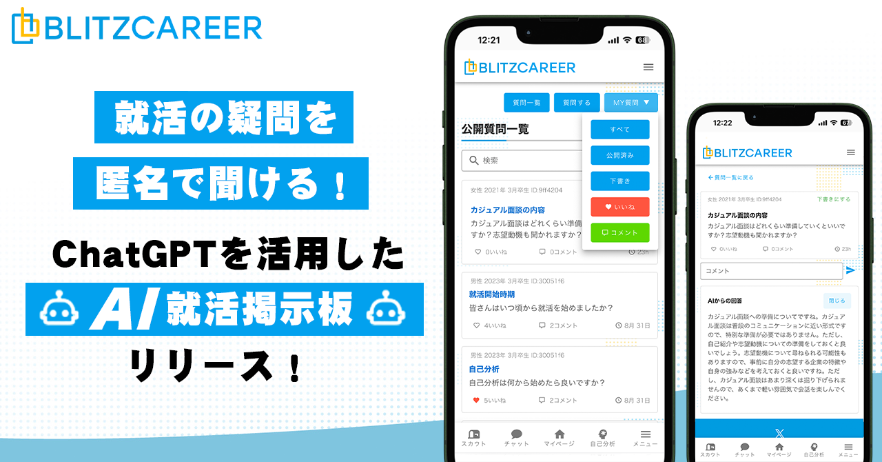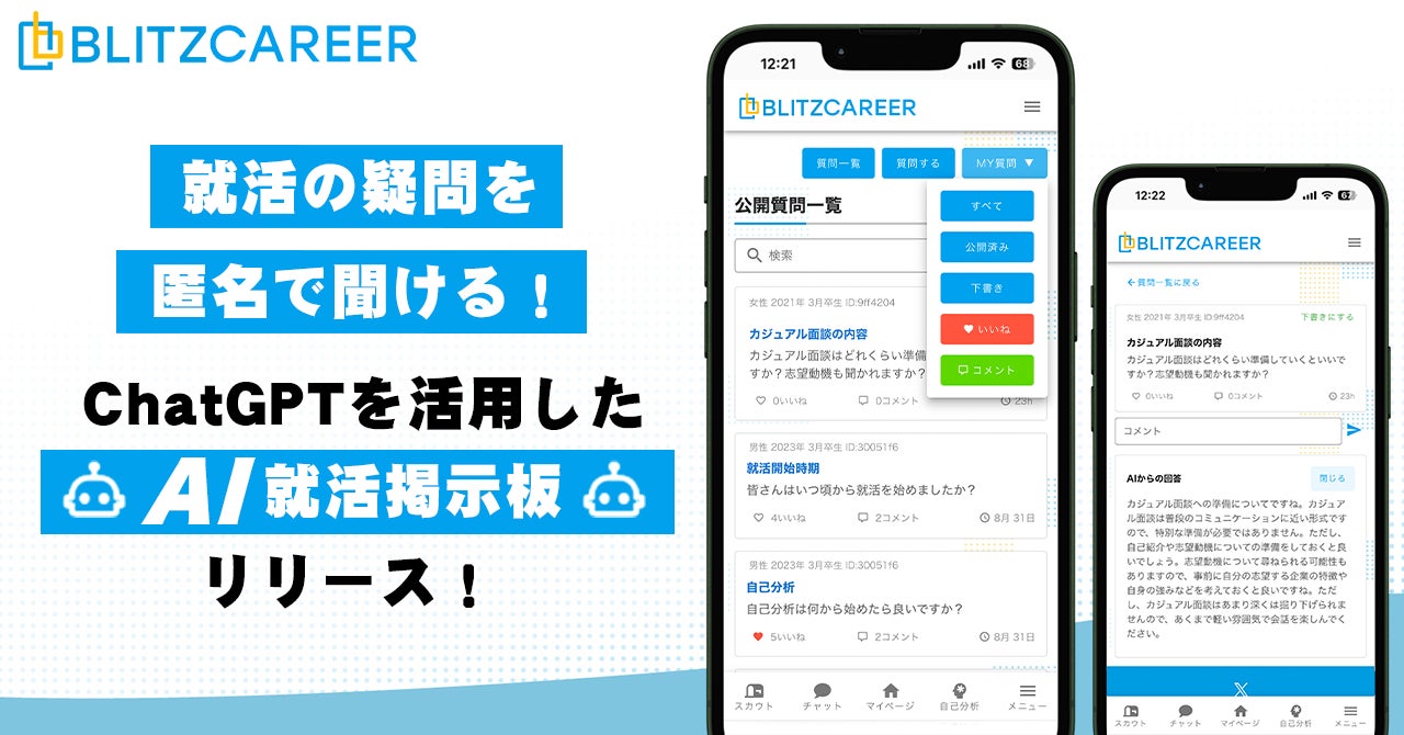 【AI就活掲示板】ChatGPTを活用した「匿名掲示板」をリリース!|BLITZCAREER(ブリッツキャリア)
