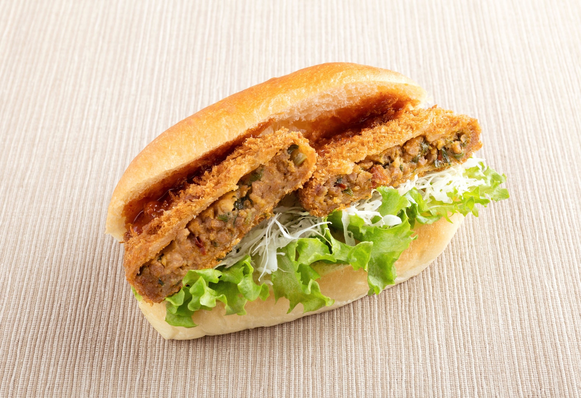 台湾ラーメンの挽き肉をイメージした台湾ミンチカツをサンド。ニンニクと唐辛子をきかせた台湾ミンチは、ビシッと辛くクセになる美味しさ!