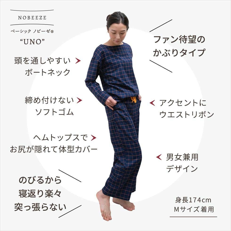 商品名:ストレッチ2重ガーゼ ノビーゼ®︎"UNO" COMfy プルオーバーパジャマ 男女兼用 長袖 長ズボン
