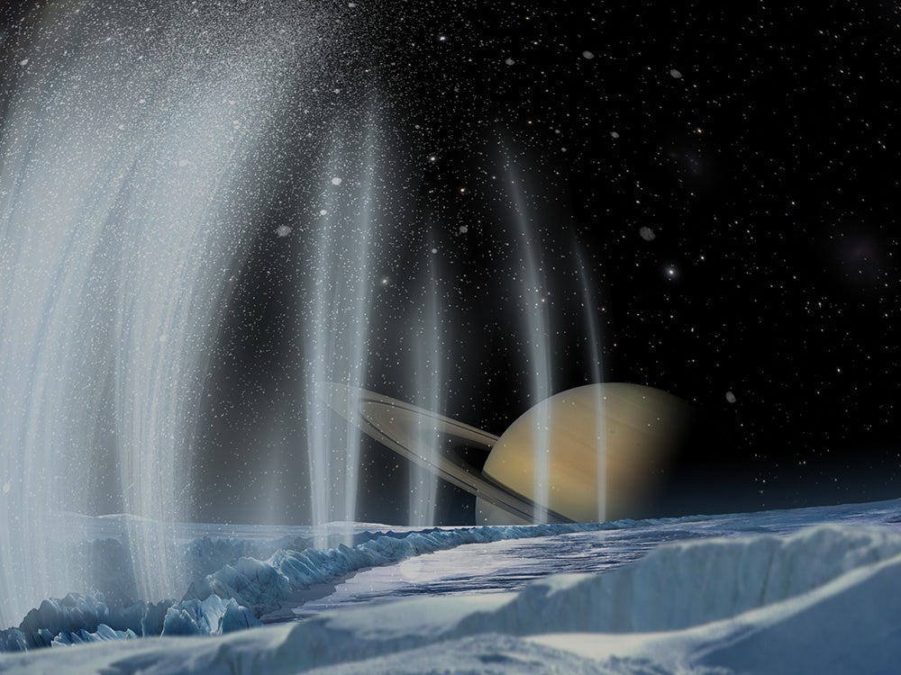 生命とのかかわりで、特に注目すべき天体は、土星の衛星エンケラドスと木星の衛星エウロパ。エン ケラドスでは、地下に海があると想定されるほか、生命誕生に関わりをもつリンが発見されており、エ ウロパでは、内部に海があったことは確実で、太陽系の中で最も生命がいる可能性が高い天体と言われ ています。