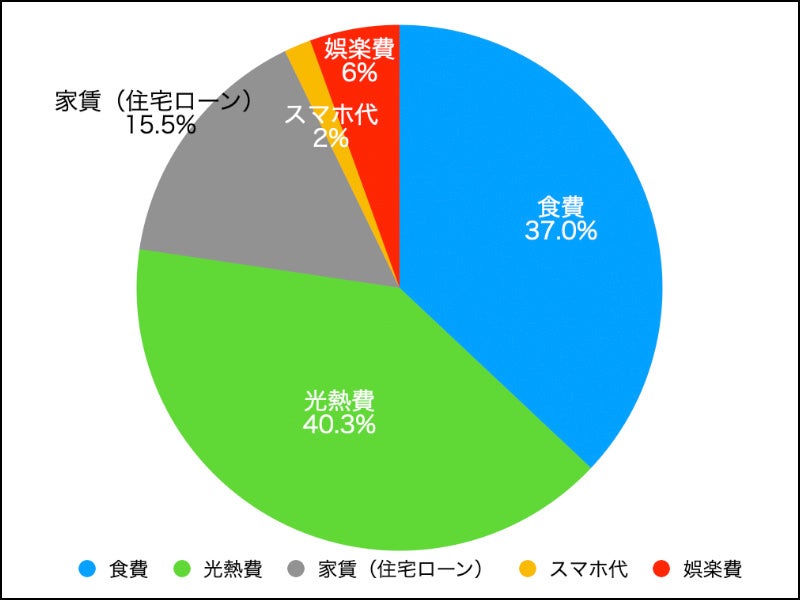 光熱費が40%で最多となり、ほぼ同率で食費が37%となっています。