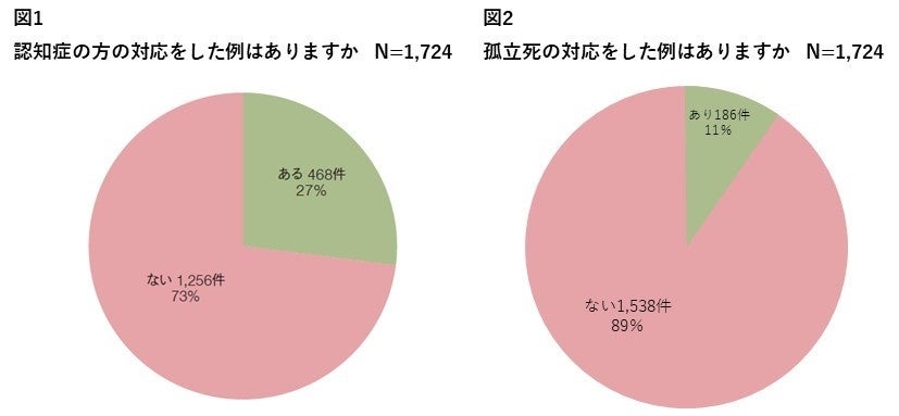 ・総回答件数1,724件のうち、認知症および認知症の疑いがある方の対応※をしたことがあると回答した管理員、フロント社員は468件、約27%であった