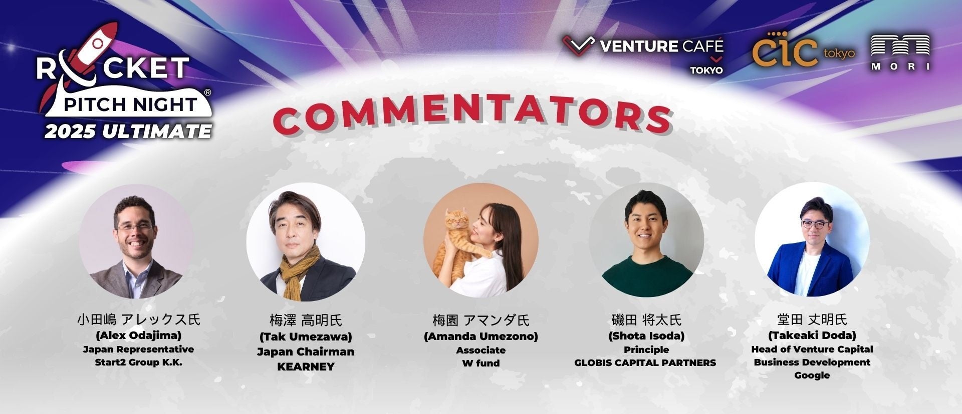 また、登壇者のみならず、著名且つ実績のある起業家や投資家、スタートアップ支援者がコメンテーターとして参加するのも本イベントの特徴です。今回も豪華なコメンテーター陣が参画予定です。(コメンテーターは順次更新予定です。)