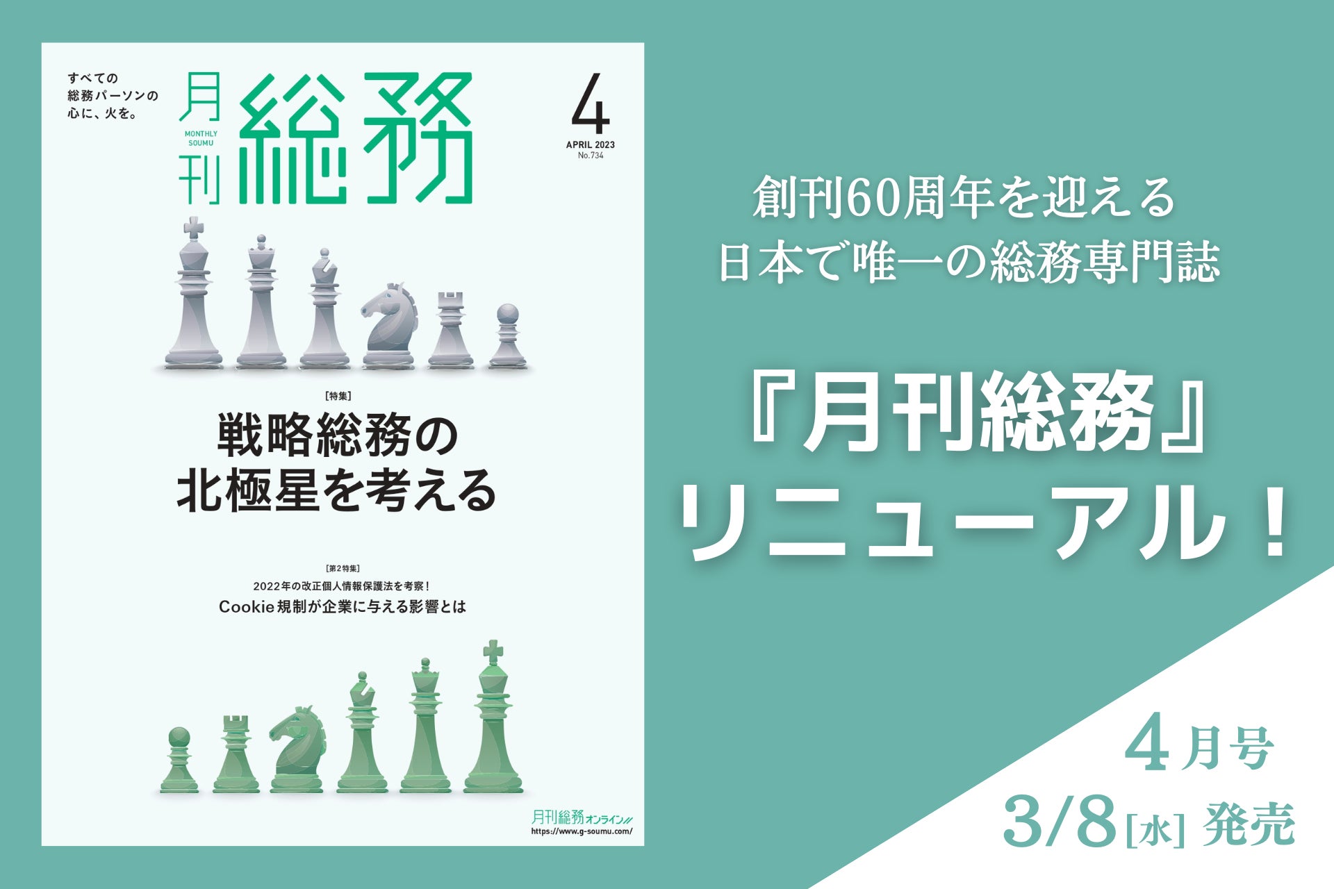 株式会社月刊総務(所在地:東京都千代田区、代表取締役:豊田健一)は、創刊60周年を迎える日本で唯一の総務専門誌『月刊総務』を、3月8日発売号より大リニューアルいたします。
